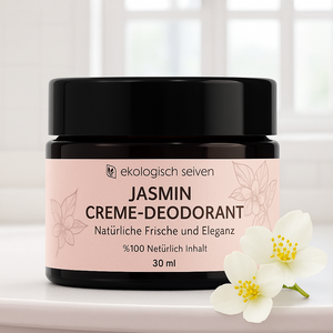 Genieße zuverlässigen Schutz vor Körpergeruch mit einem Hauch von Eleganz. Unsere natürliche Deocreme mit Jasmin pflegt sanft, wirkt antibakteriell und duftet dezent – perfekt für empfindliche Haut & alle, die Natürlichkeit lieben.
